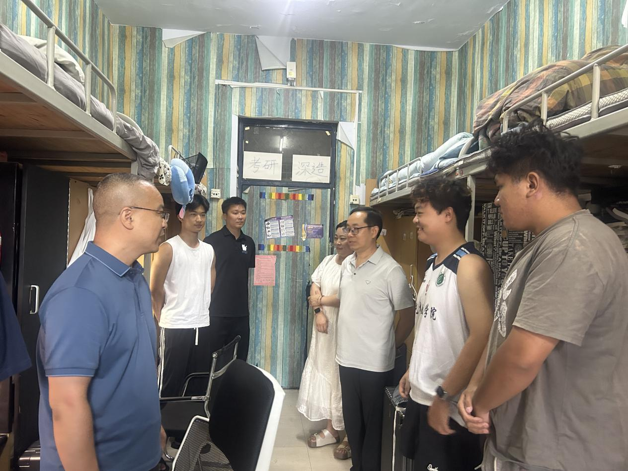 在走访宿舍过程中,张运生一行对消防设施、电气线路、公共区域卫生及寝室内务进行了“拉网式”排查,并与同学们面对面交流,详细了解返校后的学习、生活情况,叮嘱大家“人走断电、防患未然”,鼓励同学们养成文明健康的生活习惯,以整洁有序的环境开启新学期。