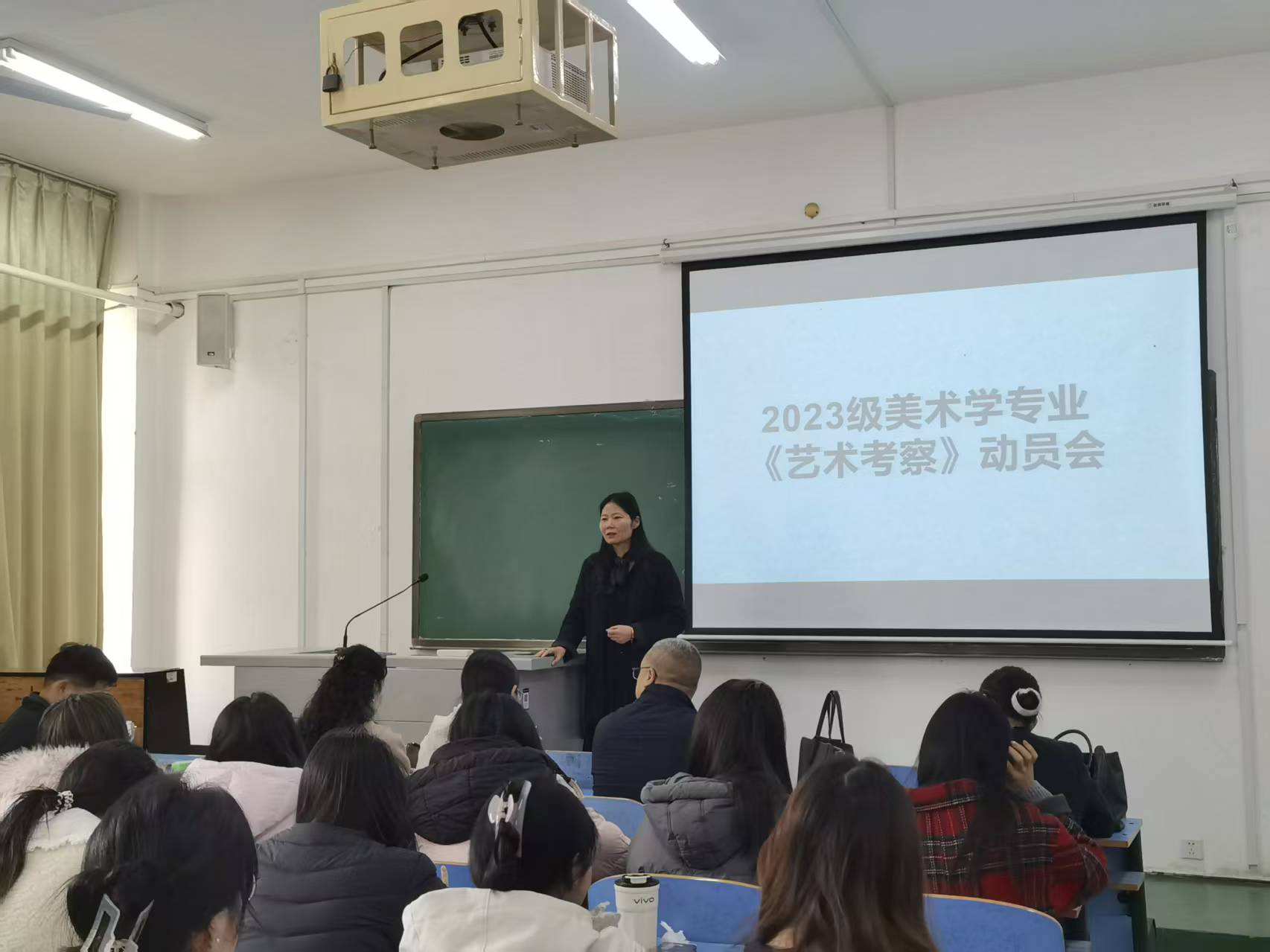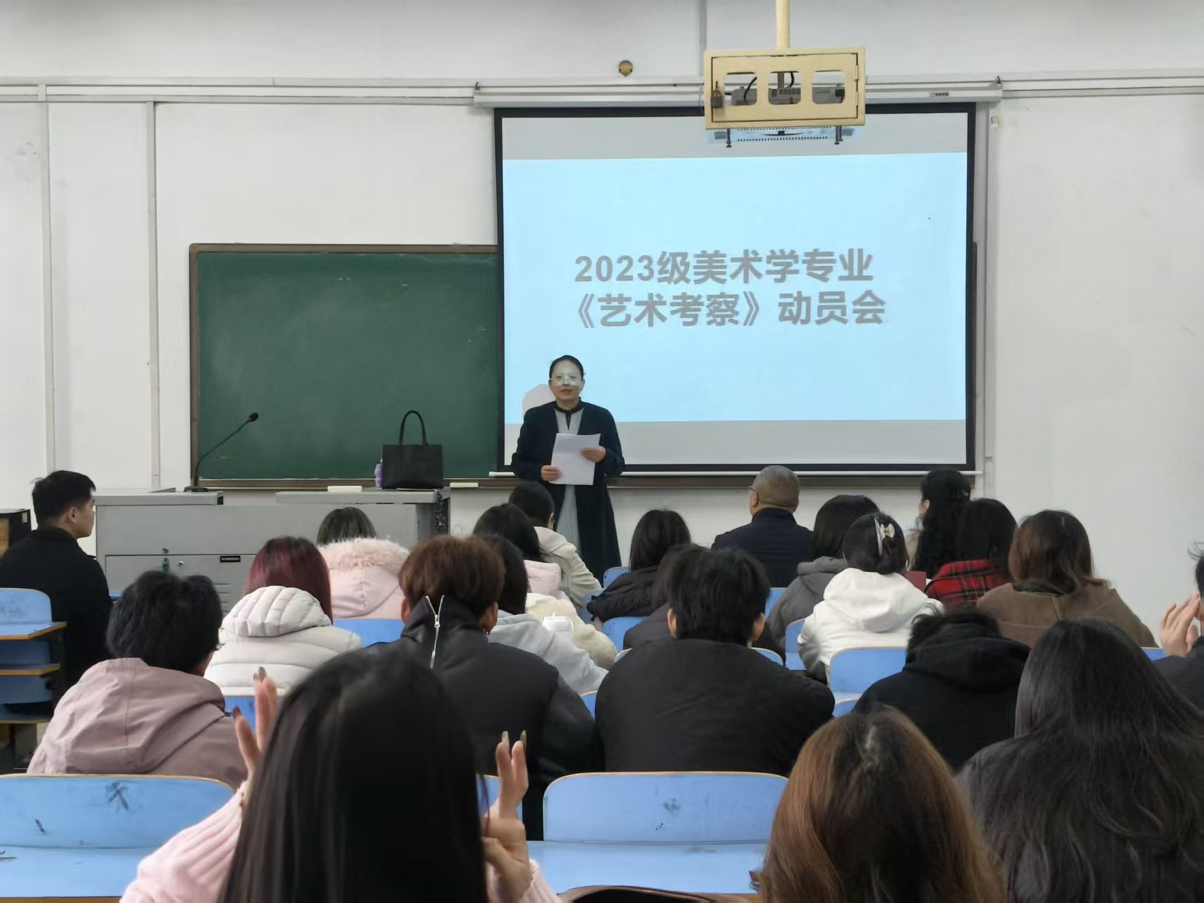 动员会的召开,不仅明确了此次考察的目标与路径,更点燃了同学们的探索热情。大家纷纷表示,将牢记领导与老师的嘱托,严守纪律、潜心观察、用心记录,珍惜此次实践机会,在广阔天地中汲取艺术养分,力争满载收获归来。据悉,本次艺术考察将奔赴河南省多地文化地标,通过实地考察、现场观摩、交流研讨等形式,助力学生提升艺术感知力与创作表现力,推动美术学专业实践教学质量再上新台阶。