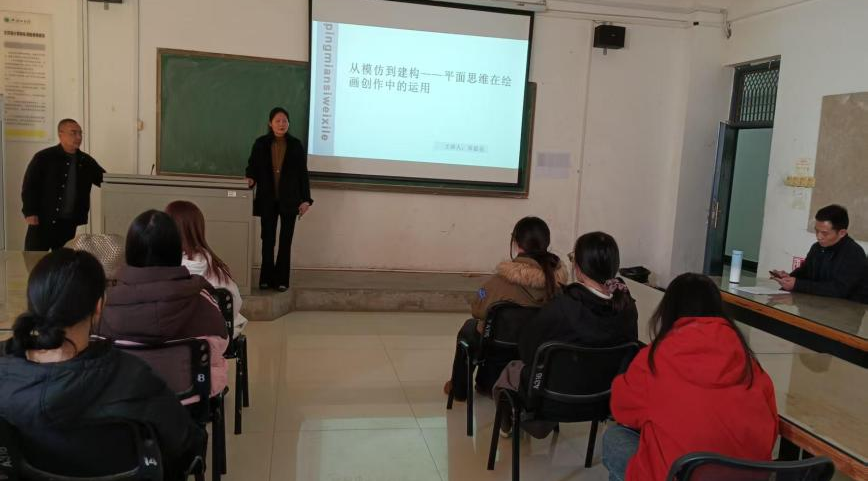 12月6日,威廉希尔公司官方网站教师祁韶亮在A316举办“从模仿到建构—平面思维在绘画创作中的运用”专题讲座。讲座由副院长郑冬冬主持,美术学和视觉传达设计专业部分老师参加。