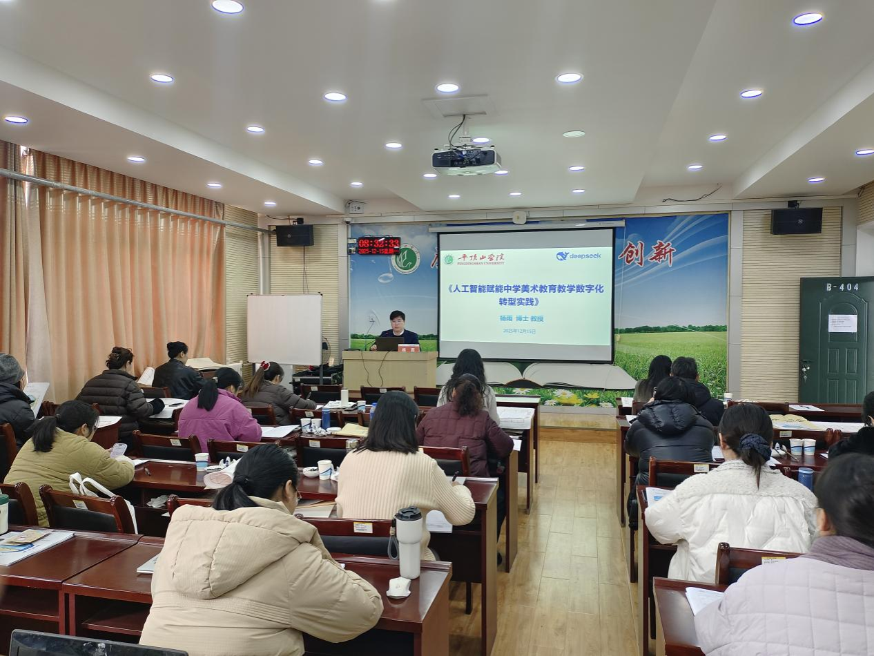 课堂上,杨雨立足中学美术教育实际教学场景,层层递进拆解人工智能与美术教学的融合路径。从AI辅助美术作品创作思路生成,到数字化工具创新课堂互动形式,再到教学资源的数字化整合与个性化推送,他系统阐释了数字化转型为中学美术教育注入的无限可能。杨雨特别强调,技术赋能的核心是为美育课堂搭建更广阔的创新平台,绝非替代教师的教学智慧,唯有实现技术与教学的有机融合,才能让美术教育在数字时代焕发出新的生命力。