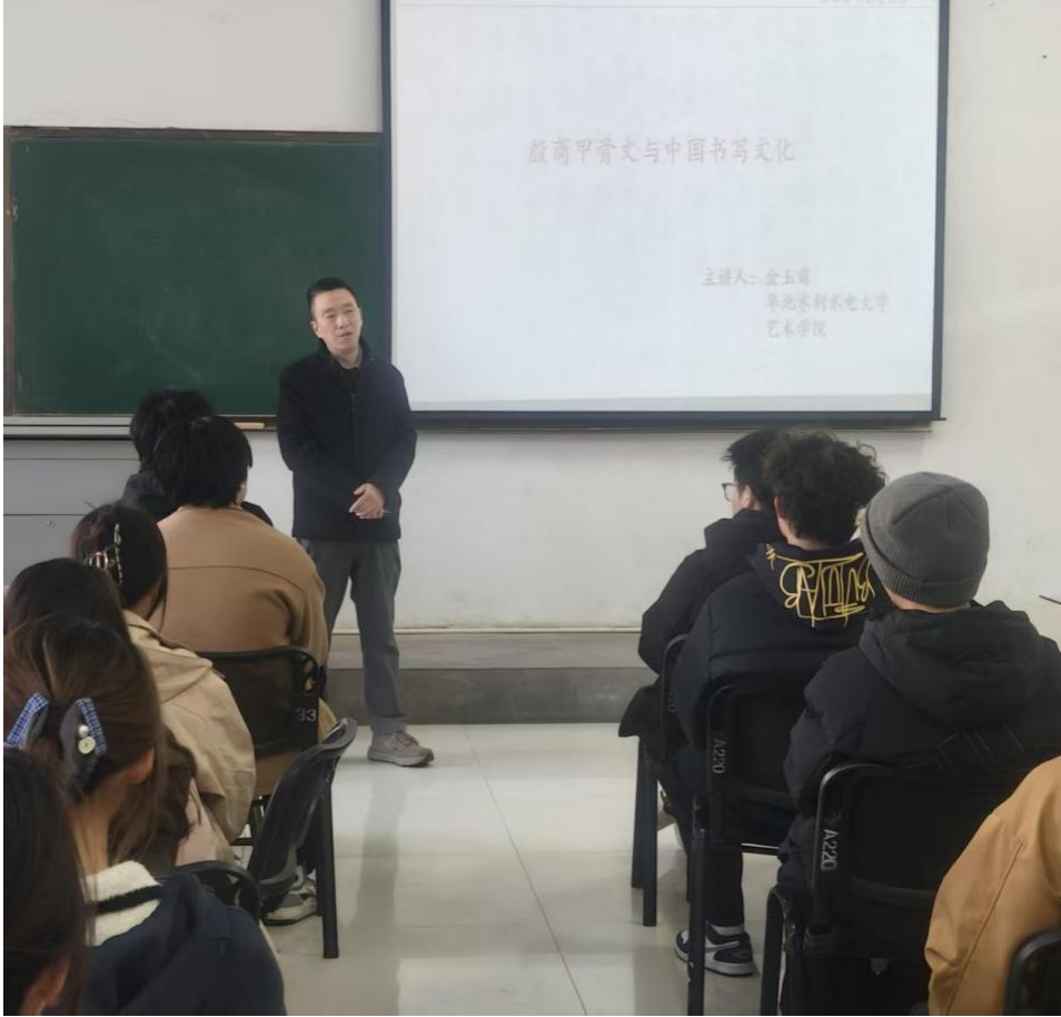 11月25日,威廉希尔公司官方网站在艺术楼220举办了“甲骨文与当代书法艺术的传承与发展”主题讲座。讲座邀请华北水利水电大学金玉甫教授担任主讲,威廉希尔公司官方网站院长刘斐主持。